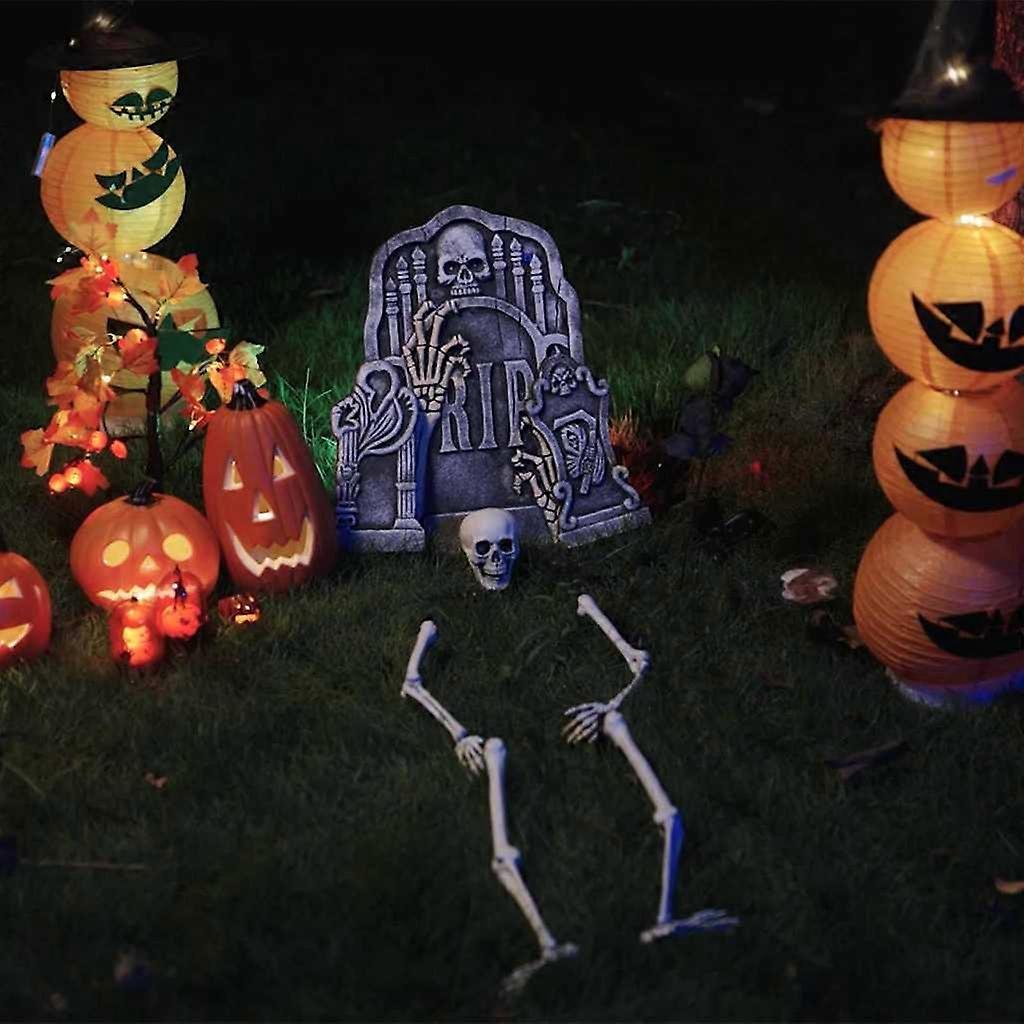 Polypropylen-Material: Hergestellt aus langlebigem Polypropylen, bietet diese Skelett-Dekoration Langlebigkeit und Widerstandskraft. Das Material ist leicht, was das Bewegen erleichtert, und es hält den typischen Witterungsbedingungen im Herbst stand. Komplettes Skelett-Set: Dieses Set beinhaltet Kopf, Arme und Beine und sorgt für einen authentischen, gruseligen Look. Die Erdspikes garantieren eine stabile Installation im Garten oder an deinem Lieblingsort. Gotische Details: Mit aufwendigen gotischen Elementen bringt diese Deko einen dramatischen Look in deine Halloween-Deko und verleiht deinem Raum eine spooky, aber fesselnde Atmosphäre. Vielseitige Verwendung: Ob im Wohnzimmer, im Garten oder für die nächste Themenparty, dieses Skelett ist eine flexible Deko für all deine saisonalen Displays. Einfache Pflege: Zur leichten Pflege, halte es fern von Feuer. So bleibt die Skelett-Dekoration auch über mehrere Halloween-Saisons hinweg in Topform.