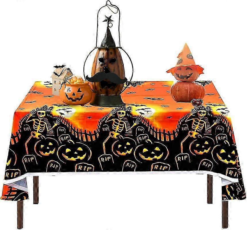 Halloween Table Cloth Orange Pumpkin Party Tablecloth 54 x 108 Inch Outdoor Waterproof Plastic tablecloth for Halloween Indoor Desktop Decoration