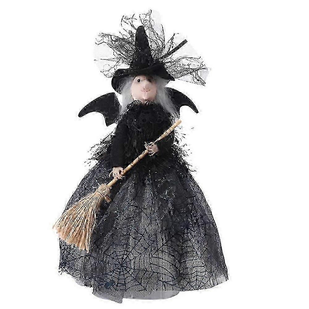Halloween Witch Dolls Decoration Halloween Fabric Witches with Hat and Witch Broom Ornament for Home Party Haunted House Tabletop Decor Gift