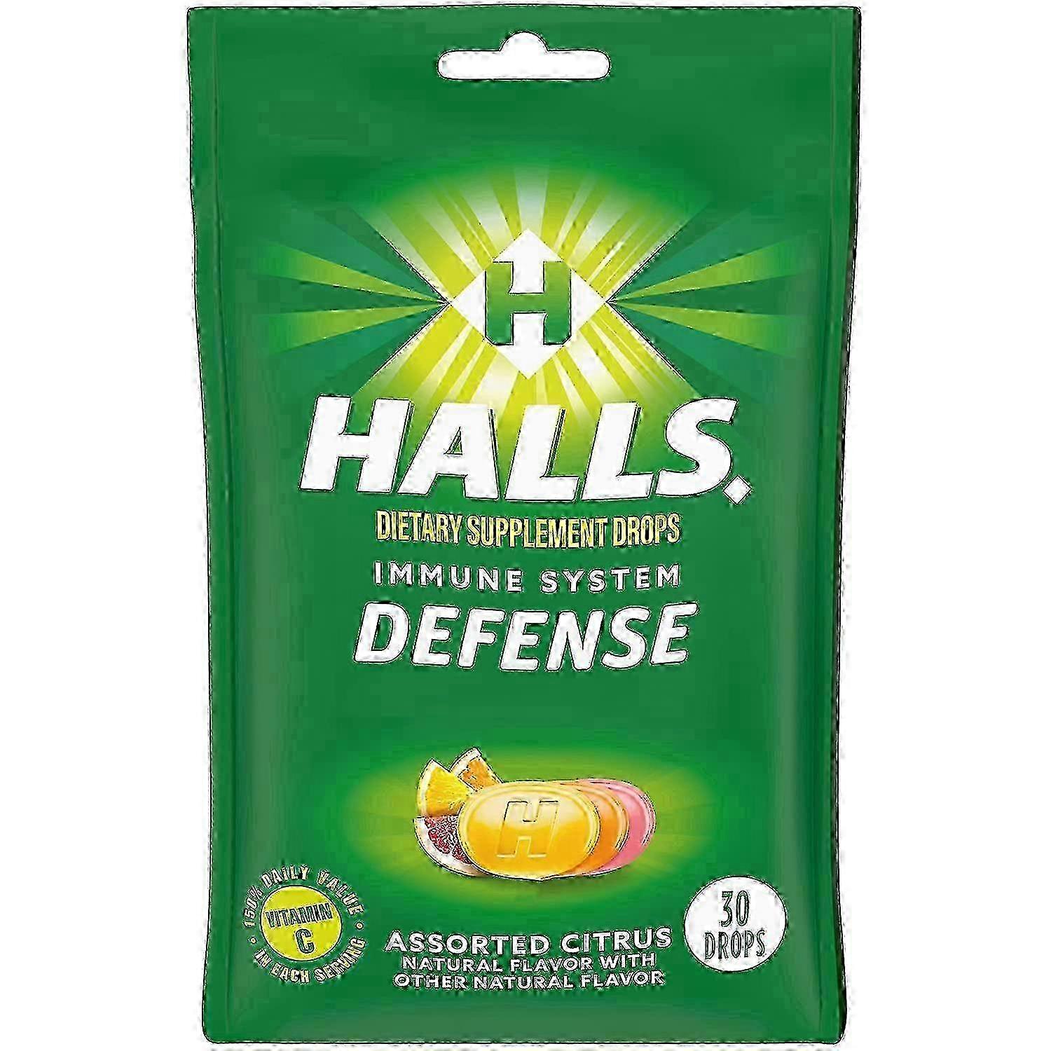 Halls Defense Cough Drops Plus Vitamin C, Citrus, 30 Ea