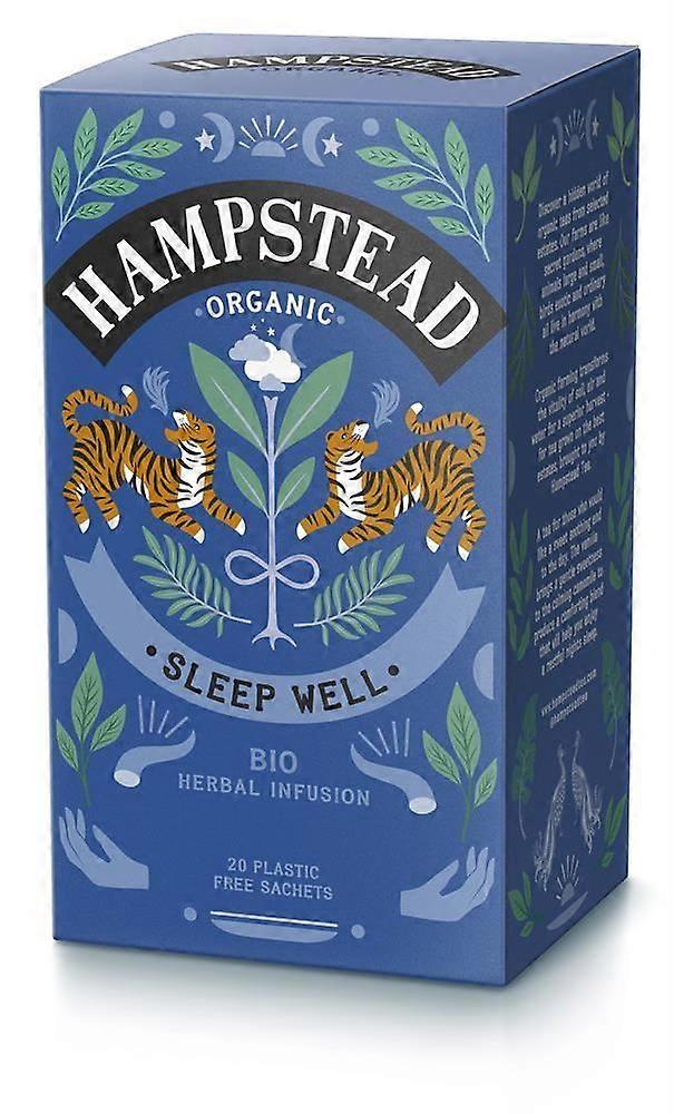 Experience a restful and rejuvenating night's sleep with Hampstead Tea Organic Sleep Well Tea. Expertly crafted using a soothing blend of Rooibos, Chamomile, and Vanilla, this herbal infusion promotes relaxation and calmness, helping you unwind after a busy day. Each tea bag is packed with carefully selected organic ingredients known for their natural calming properties: Rooibos: Naturally caffeine-free and rich in antioxidants, supporting overall wellbeing. Chamomile: Traditionally used to reduce stress and encourage tranquility. Vanilla: Adds a subtle sweetness and comforting aroma to enhance relaxation. This tea is ideal for consumption in the evening as part of your bedtime routine, helping to soothe the mind and prepare the body for restorative sleep. Its gentle, naturally sweet flavor makes it a delightful treat without the need for added sugars or artificial ingredients. Suitable for those seeking a natural aid to improve sleep quality, this blend is caffeine-free and safe for nightly use. Enjoy a warm cup to create a peaceful moment of calm and support your overall sleep hygiene. Contents: 20 individually wrapped tea bags, conveniently portioned for easy brewing.