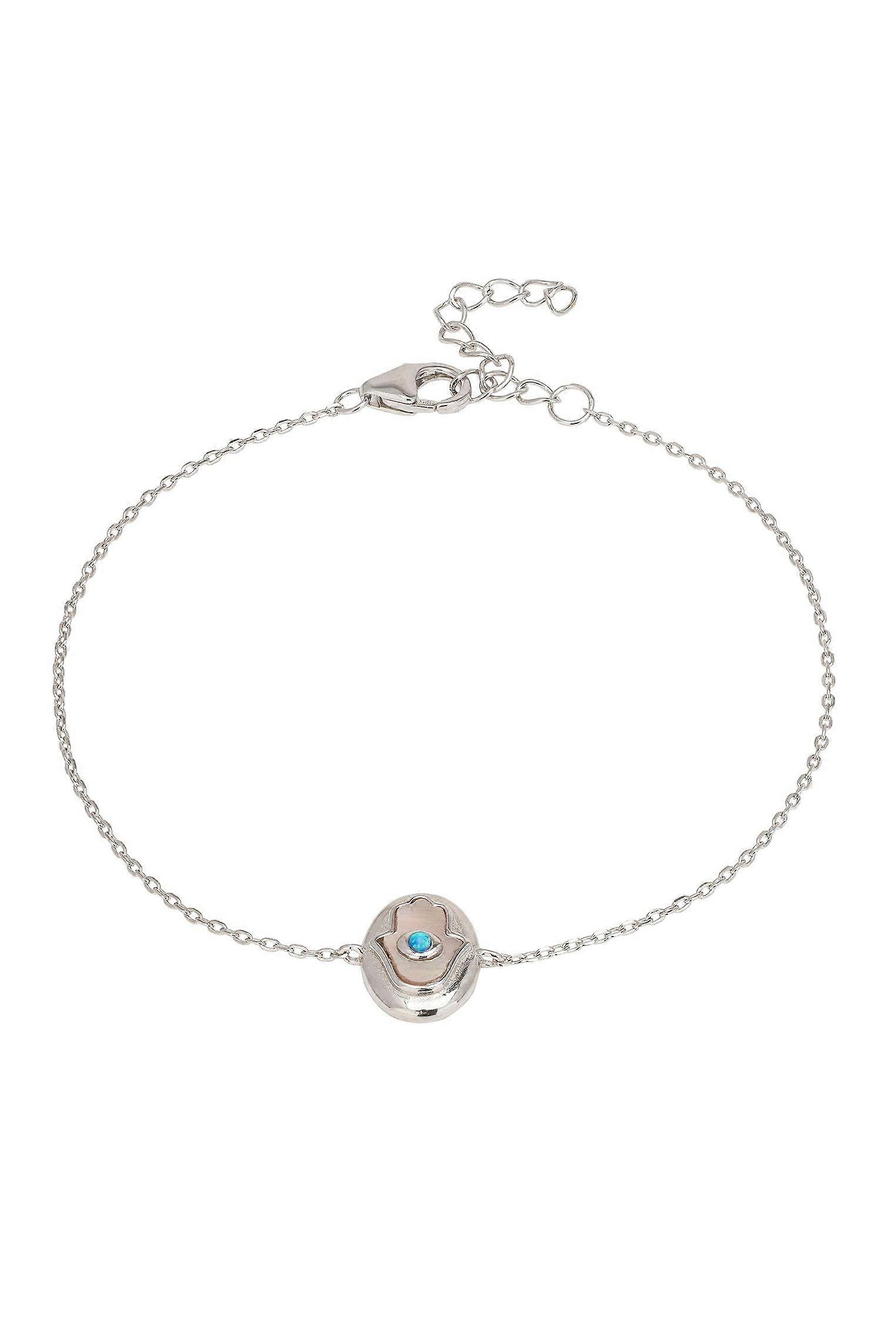 Hamsa Hand Mother Of Pearl With Opal Bracelet Silver