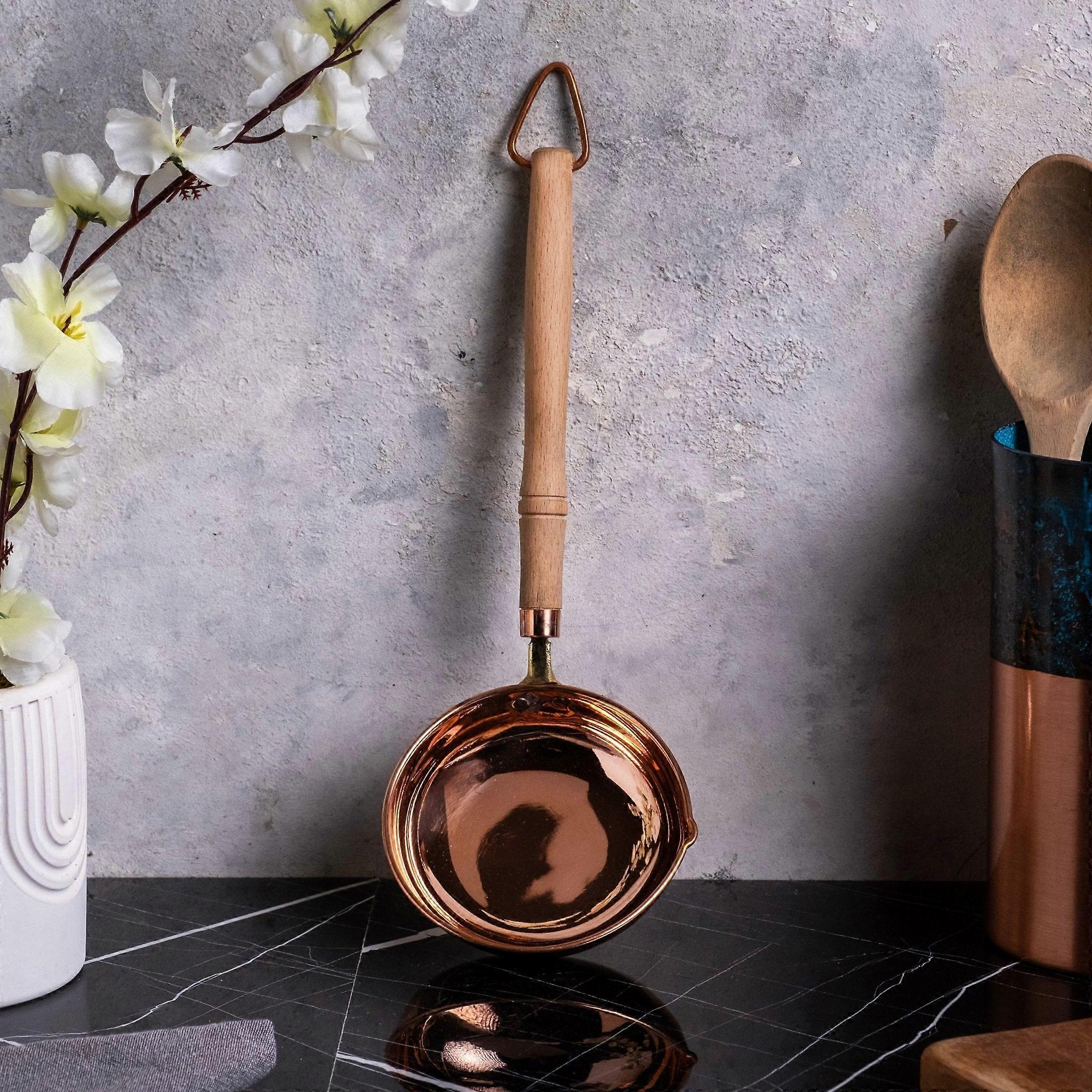 Handcrafted Copper Ladle With Wooden Handle – Traditional Cooking And Serving Utensil
