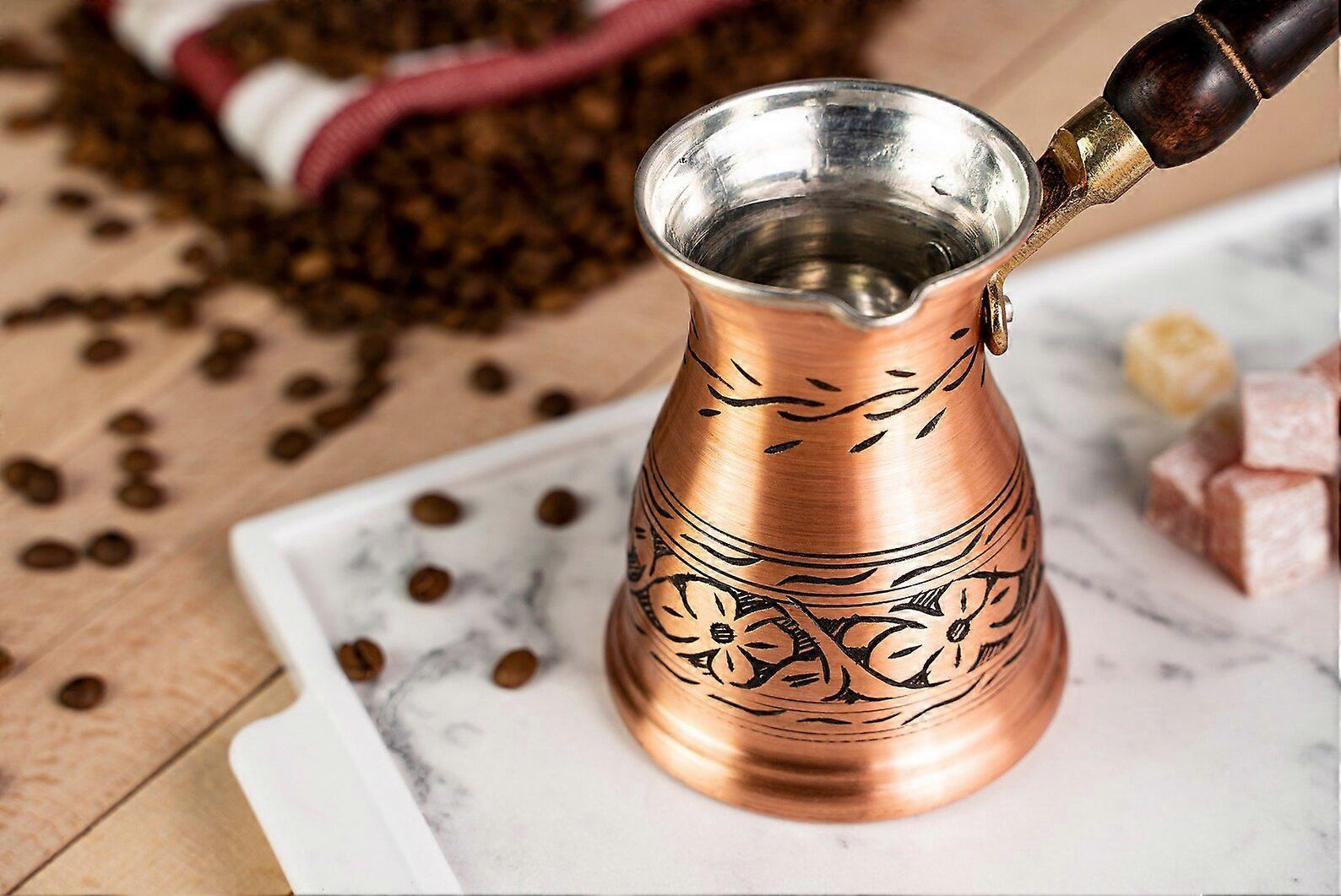 Handmade Copper Coffee Pot With Wooden Handle – Stovetop Turkish Coffee Maker