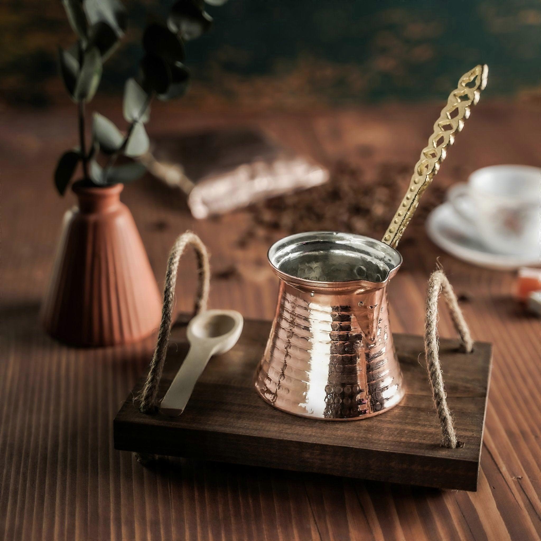 Handmade Copper Turkish Coffee Pot – Hammered Copper Cezve With Ornate Brass Handle