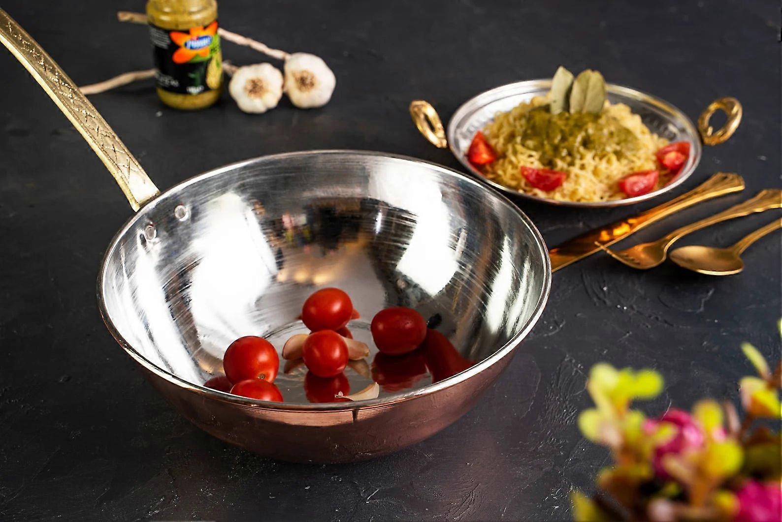 Handmade Copper Wok Pan With Brass Handle – 420mm Stir-fry Skillet