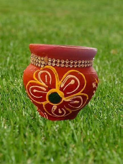 Handmade Decorated Small/Mini Mitti Kalash for Puja and Decoration Purpose (Pack of 6)