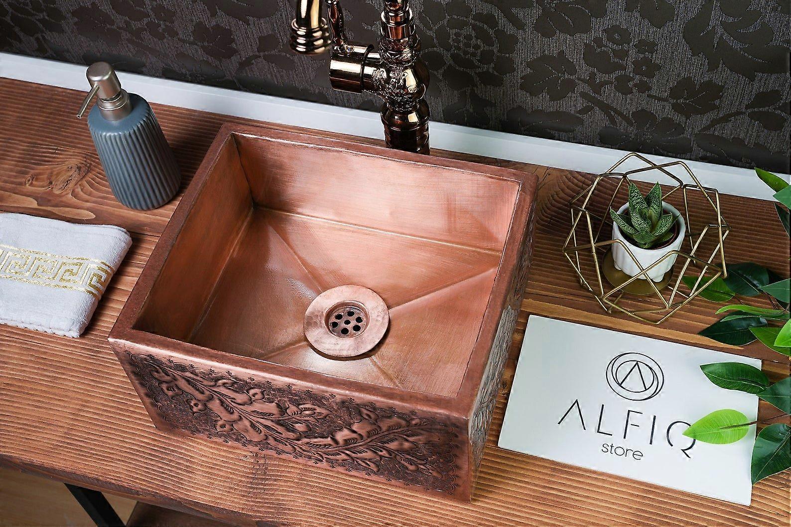 Handmade Embossed Copper Bathroom Sink – Rectangular Vessel, 12" X 8" X 6"