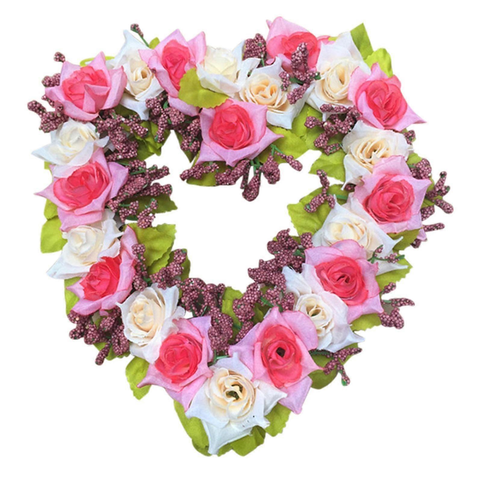 Handmade Flower Wreath for Valentine's Day Love Heart Shape Garland Wreath Wall Hanging Decoration Party Holiday Home