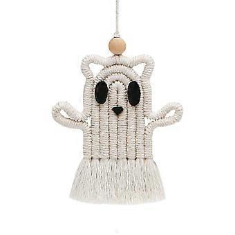 Handmade Halloween Ghost Hanging Decoration Wooden Bead Cotton Rope Tassel Ghost Hanging Ornament Holiday Party White Ghost Pendant