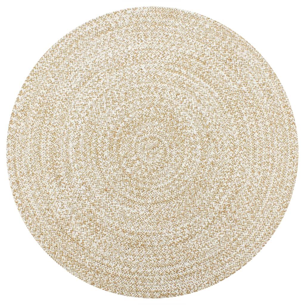 Teppich Handgefertigt Jute Weiß und Natur 120 cm