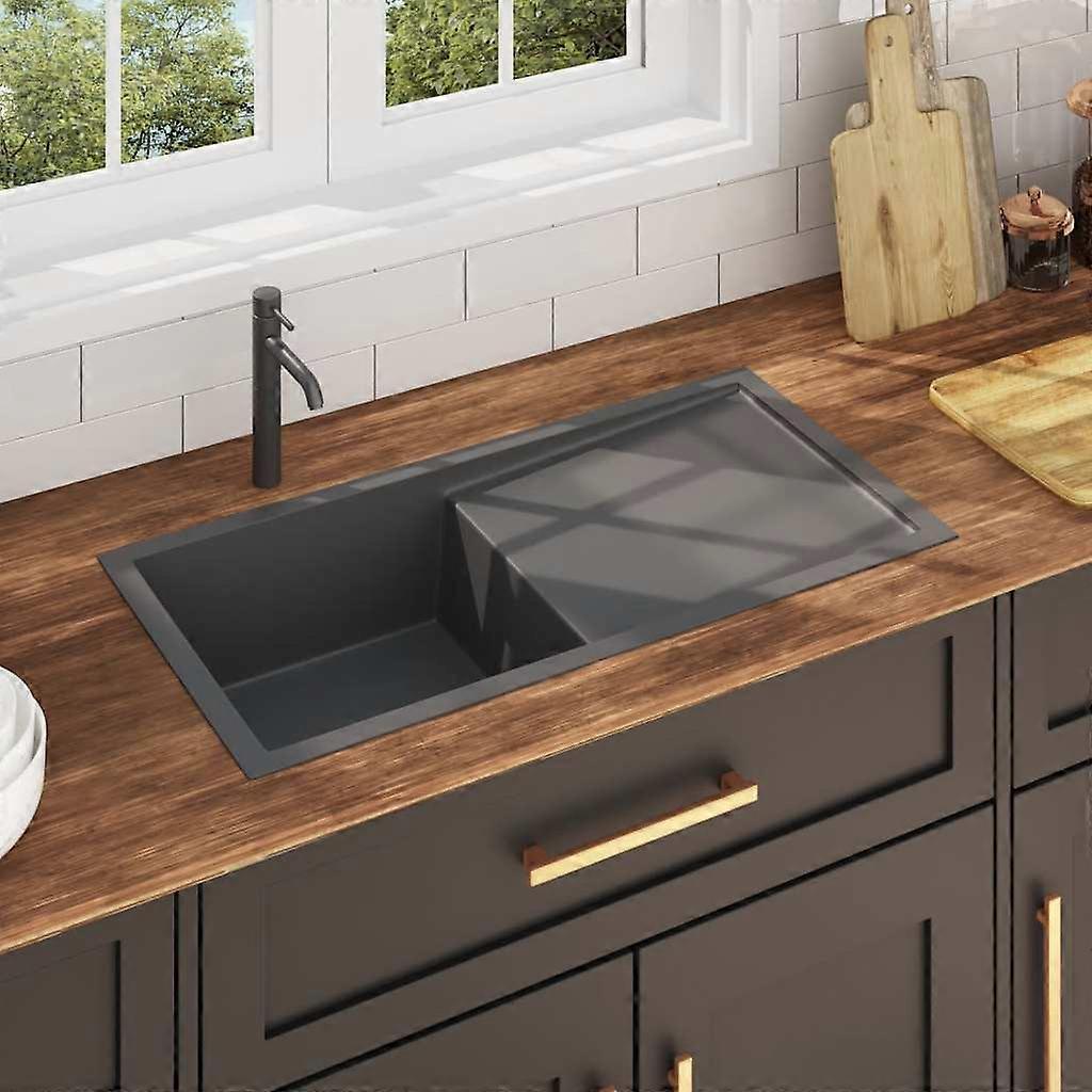 Handgefertigte Küchenspüle Schwarz Edelstahl