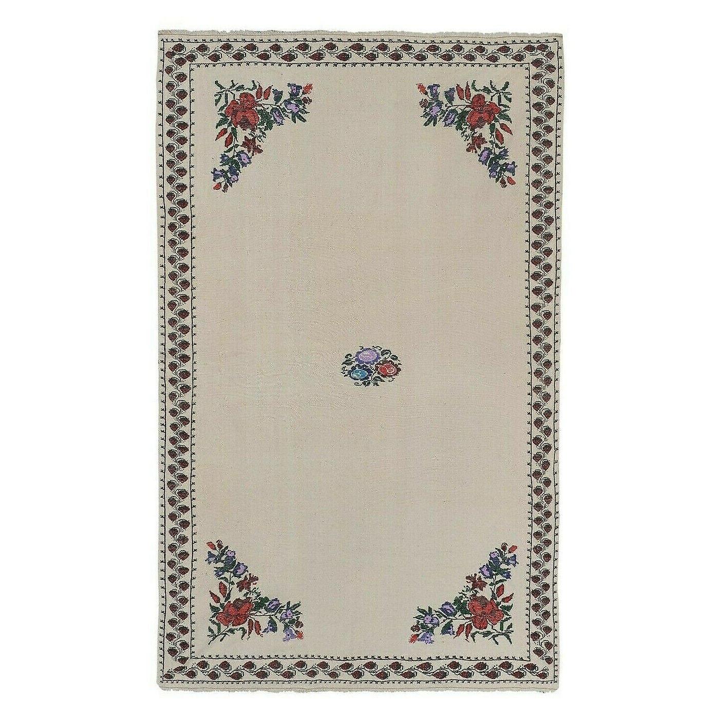 Handwoven Needlepoint Floral Pattern Kilim Rug - Turkish