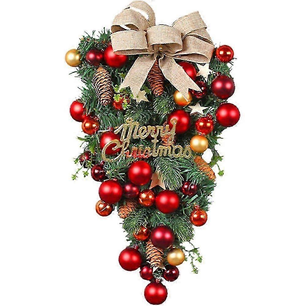 Hanging Christmas Wreaths - Merry Christmas Christmas Tree Upside Down Wreath |Artificial hanging garland for holiday Christmas decoration
