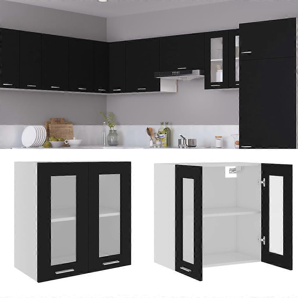 Hängeglasschrank Lyon Schwarz 60x31x60 cm Holzwerkstoff