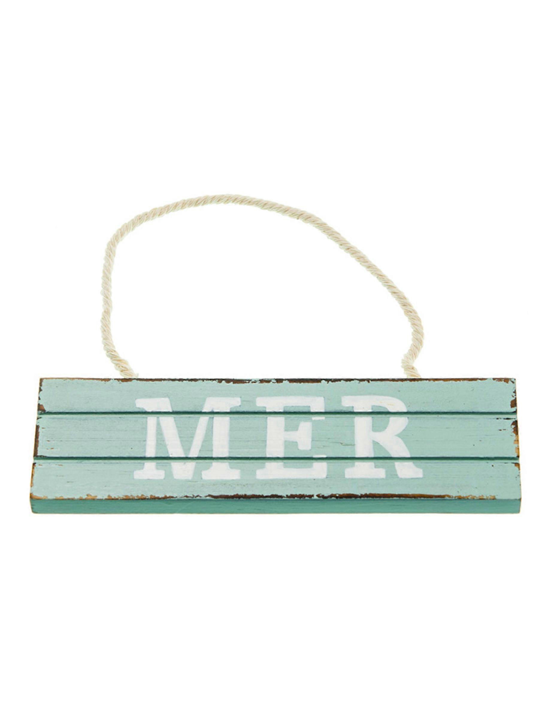 Pancarte à suspendre en bois Mer bleue 15 x 4,5 cm