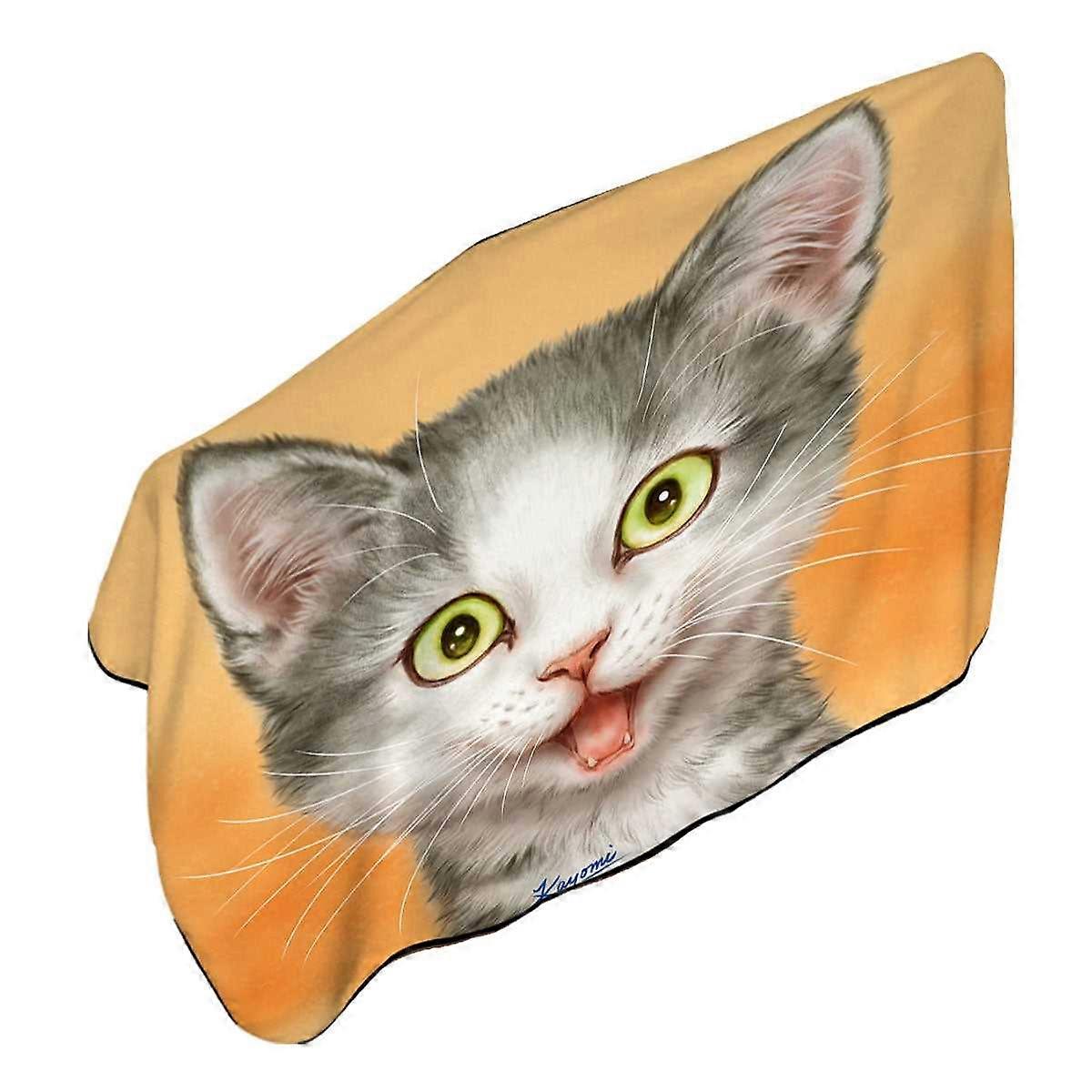Happy and Joyful Grey Kitten over Orange Microfiber Beach Towel