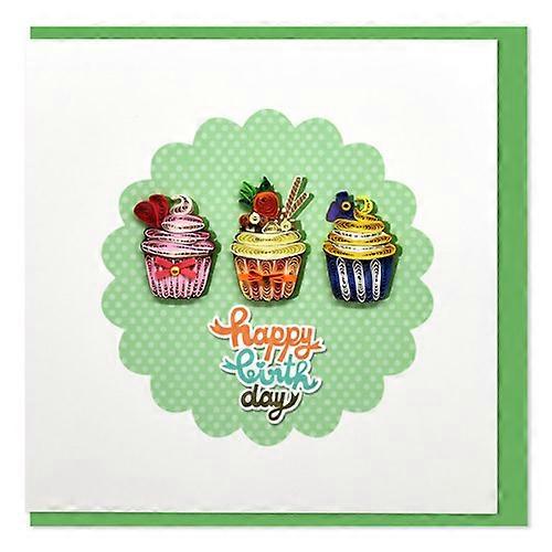 Happy Birthday Quilled Greeting Card - Trio Cupcakes
