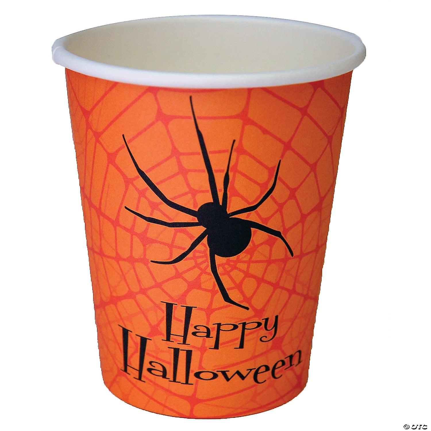 9oz.Halloween Party Cups. Perfect for your beverages at your next halloween party These Halloween-themed paper cups will be great for any kind of spooky party you ft.re having Great for adults or kids. 9 oz. 8 cups to a package.