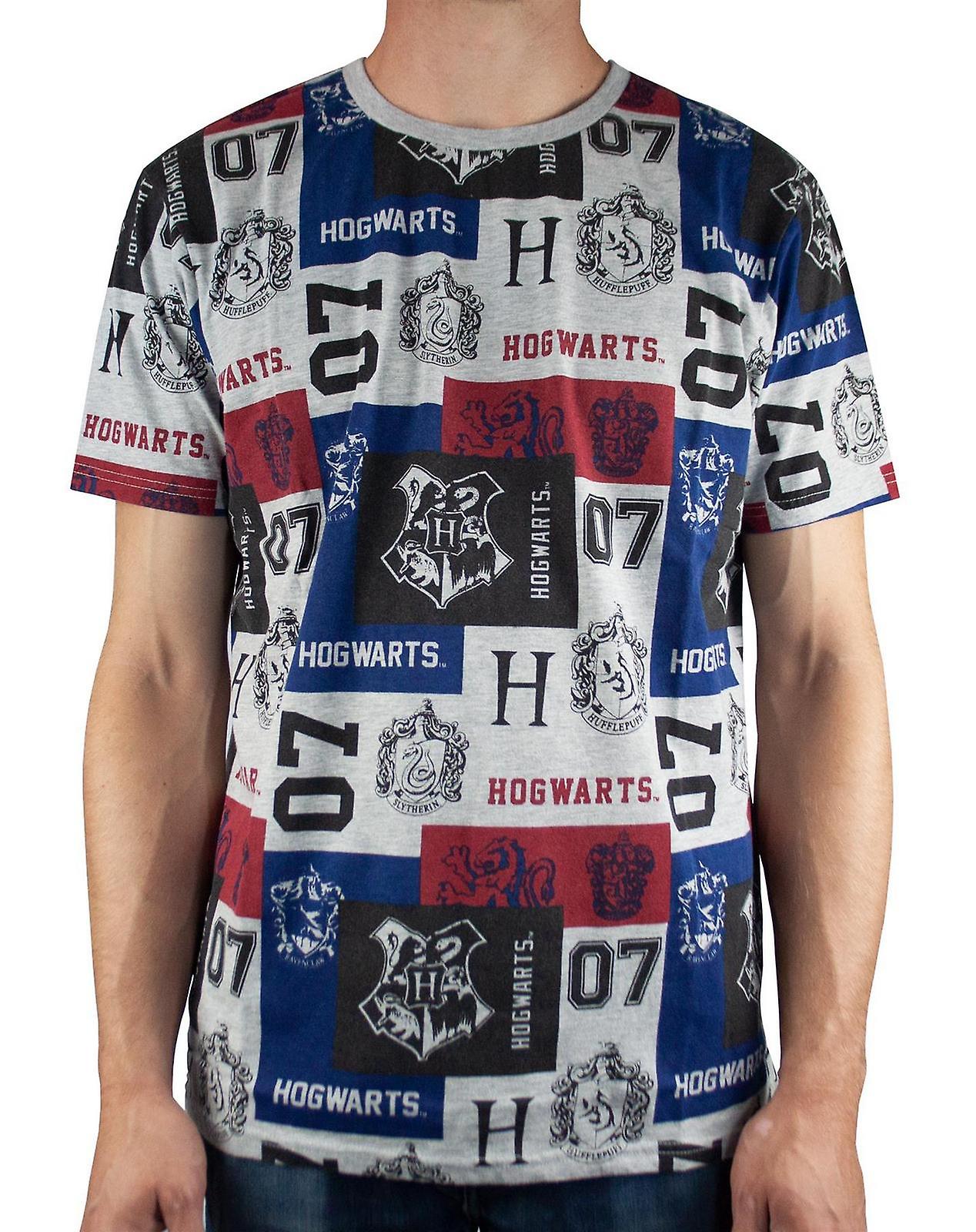 Harry Potter Mens Short Sleeved T-Shirt Grey Hogwarts Houses