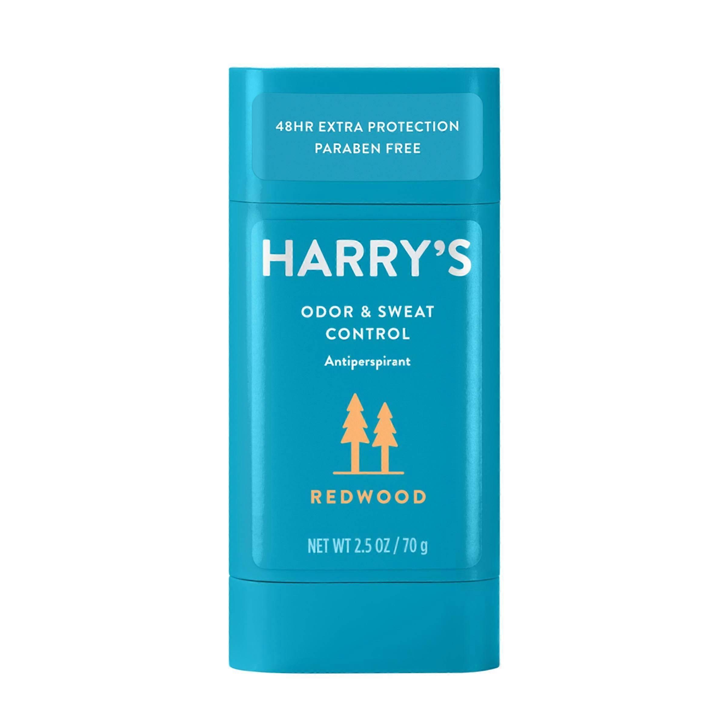 Designed for men looking to keep odor and sweat in check, Harry’s Odor Sweat Control Antiperspirant Deodorant in Redwood keeps you smelling and feeling fresh throughout the day. Our unique formula provides 24-hour odor and sweat protection, and our Redwood scent includes exhilarating notes of evergreen leaves, sea salt, and sandalwood. It’s brisk, sharp, and woodsy—a scent inspired by real things. The white solid antiperspirant deodorant stick goes on smoothly, without feeling sticky, and it’s suitable for guys with sensitive skin. It’s also made with thoughtful ingredients, including calming ginger root and bisabolol and soothing jojoba oil, and without BHT, D5, parabens, or phthalates.Harry's Odor Sweat Control Antiperspirant for Men, Redwood Scent, 2.5 Ounces Provides 24-hour odor sweat protection Redwood is an exhilarating scent of coastal woodlands White solid antiperspirant stick goes on smoothly, without feeling sticky Suitable for men with sensitive skin Made without BHT, D5, parabens, or phthalates About Harry's Harry’s is a men’s care company that offers quality shaving and grooming products at a great value. We prioritize quality craftsmanship, thoughtful ingredients, and straightforward design so guys don’t have to compromise on the fundamentals of their routine.