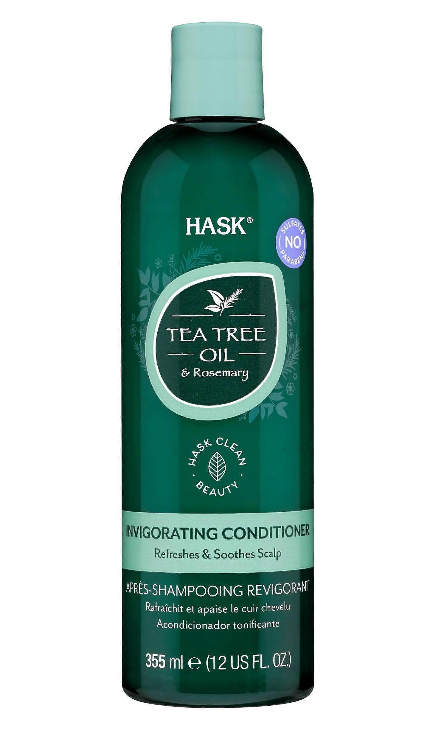 Hask Tea Tree Oil & Rosemary Invigorating Conditioner Soothes Scalp & Revitalizes. Free of: sulfates, parabens, phthalates, gluten, drying alcohol and artificial colors. Hask Invigorating Tea Tree Oil and Rosemary Conditioner soothes the scalp and revitalizes strands while removing impurities. Directions: Apply to wet hair, leave on for 1-2 minutes and rinse thoroughly. Ideal for daily use. Formulated without sulfates, parabens, phthalates, gluten, drying alcohol and artificial colors. Cruelty-free, Leaping Bunny certified. Formulated with purifying tea tree oil to unblock hair follicles and rosemary to reset the scalp and restore your strands. Balancing Tea Tree oil is known for its purifying properties, helping to unblock hair follicles and nourish roots. Leaves scalp and strands feeling clean. Rosemary extract acts as a natural conditioner that hydrates and soothes dry, itchy scalps. Complete your routine with the rest of the HASK Tea Tree Oil and Rosemary Invigorating collection. Suggested Use: Apply to wet hair, leave on for 1-2 minutes and rinse thoroughly. Ideal for daily use. UPC: 071164301210 Weight: 1.13 lbs