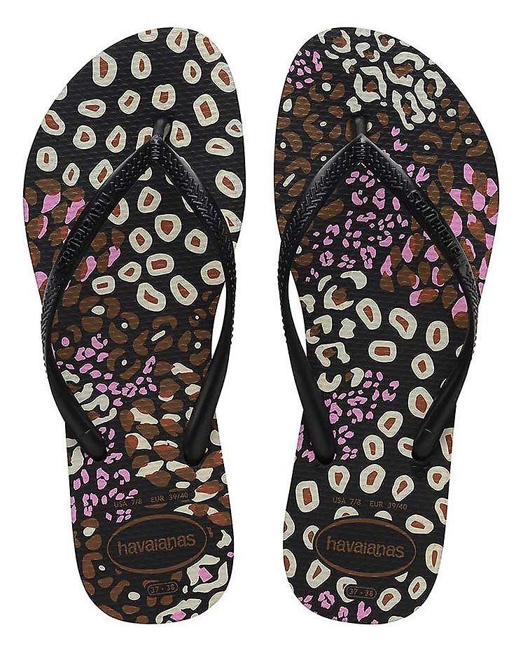 Havaianas Slim Animals Black Pink Lemonade Womens Summer Beach Flip Flops