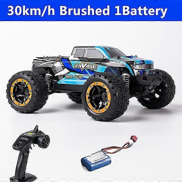 Note: 2 Option RC car for you : one is 45km/h Brushless RC Car other is 30m/h BrushedRC Car Linxtech 16889 is a 4WDbrushlessbig foot RC car with a high speed of45km/h. It specially has charging protect function, which means it can help the battery be constant current and constant voltage balanced charged, a protecting function for overcharge and over-current of battery. Allowing the battery to have a super long service life. Ready to run. Features: [Function]: Charging/motor anti-seize/high temperature protection, ESC low voltage power off function, 2.4Ghz full scale throttle/steering, LED light. [45KM/H Top Speed]: Use super powerful brushless motor, 1300mAh battery and 4 wheel driving, electric energy converted into power maximizely, strong power torque significantly make the car easy to complete difficult moves. [Free Racing]: 2.4GHz full-scale synchronous remote control system. Full-scale throttle/steering. With anti-jamming capability, allows several car to race at the same time in the same track. 120 meter control distance, racing freely. [Integrated brushless ESC / receiver,3-wire servo]: Strong power system parts. With 3-wire servo, the car runs precise, responsive. [Strong Shock Absorber]: Perfectly absorb shock. Adjustable aluminum ring suspension and the whole car equipped with ball bearing. Fast, affordable fun, excitement in rocks, grass, mud and snow [Note]: Any problem, please contact us without hesitation. Honor to serve you Specification: Brand: HBX Item No: 16889A 16889 Frequency: 2.4G Scale: 1/16 Max Speed: 45km/h Servo: 17G 3 wires steering servo Color: As the picture shown Car Size: 270*215*130mm Material: Hardware and plastic Battery for the car: 7.4V 1300mAh Li-ion battery(Included) Wheelbase: 175mm ESC: 7.4V 25A (intergrated ESC/Receiver) Using Time: 16-20 minutes Motor: 2435 brushless motor (KV3900) ESC: Electronic ESC/Receiver(brushless) 25A Wheel Diameter: 78mm Charging Time: About 3.5-4 hours Wheel Width: 41mm Remote Distance: >100m Transmitter Battery: 3X 1.5V AA(not included) Gear Ratio: 1 Package list: 1* RC Car 1* Car Battery 1* USB Charging Cable 1* Remote Controller 1* Instruction Manual 1* LED Lights 1* Head Wheel 1* Screwdriver 4* Extra Body Clips
