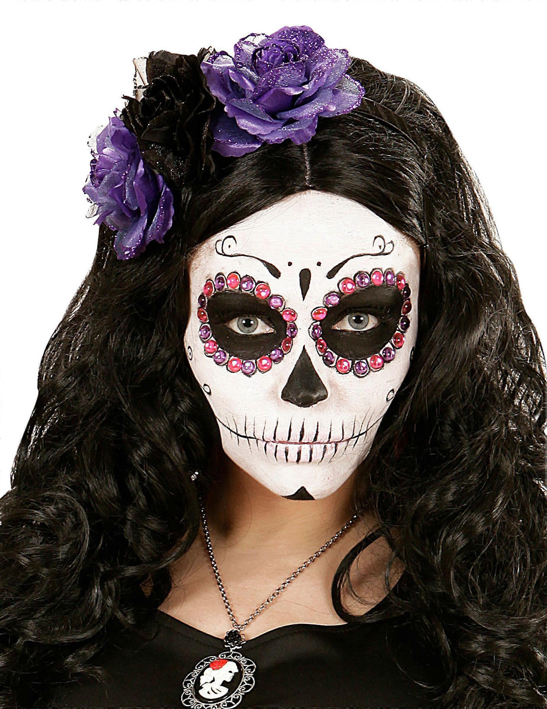 Serre-tête fleurs violettes et noires femme Dia de los muertos