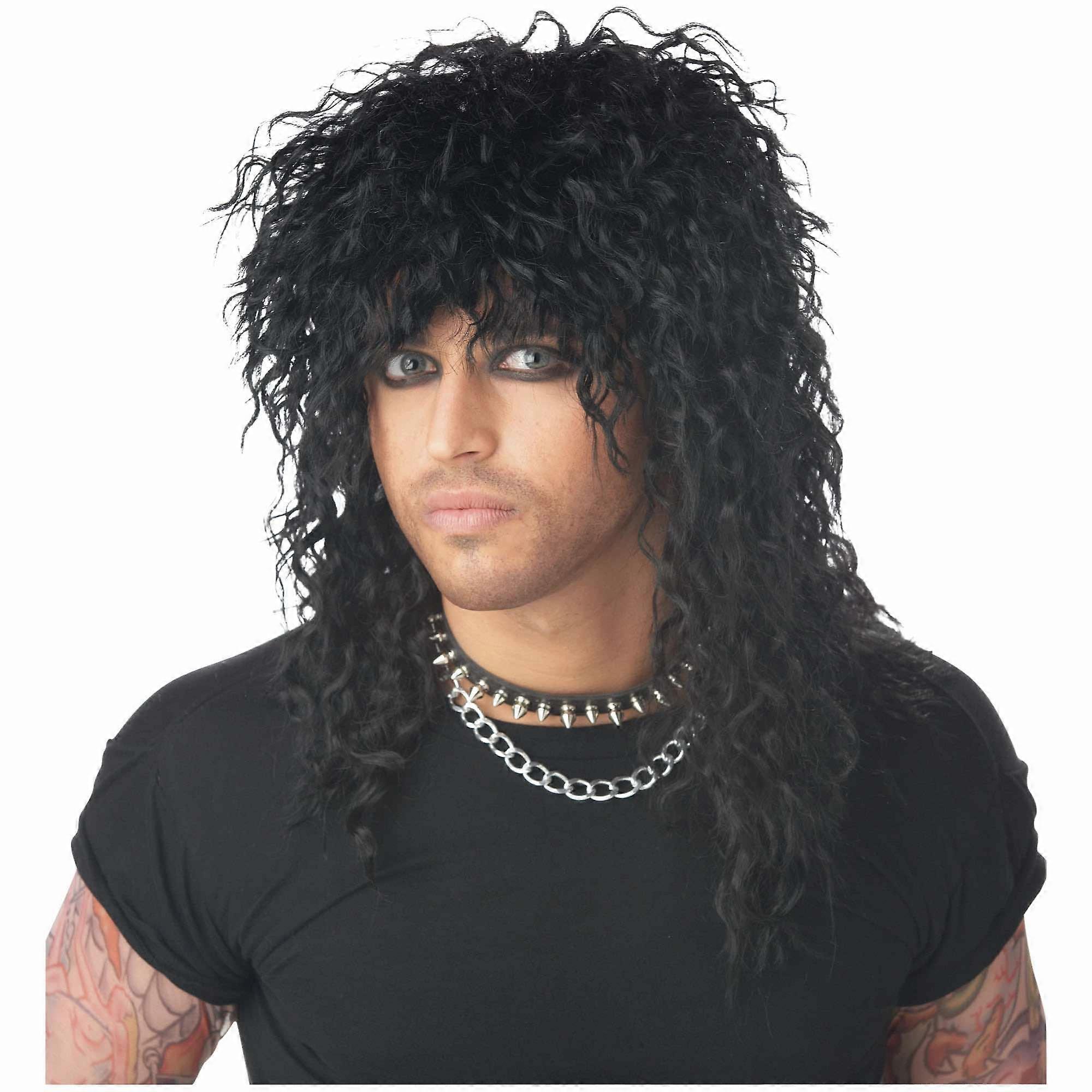 Headbanger Black 80s Heavy Metal Rock Men Costume Wig