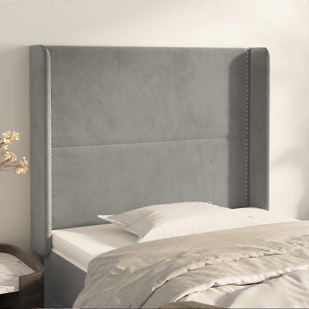 Kopfteil mit Ohren Hellgrau 103x16x118/128 cm Samt