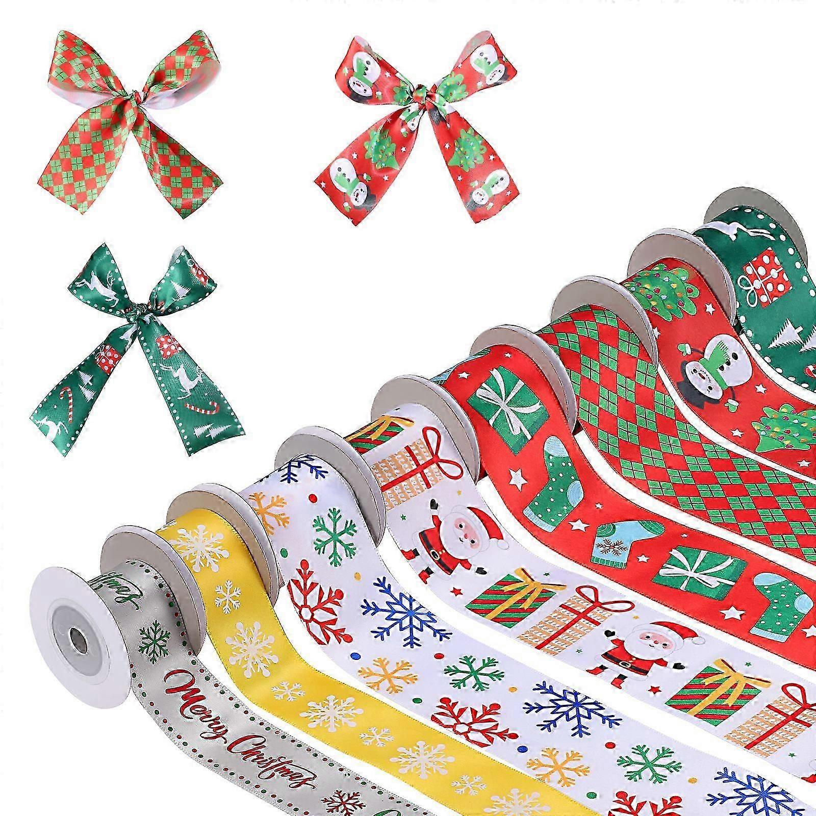 Healifty 8 Rolls Christmas Decorative Ribbon Set Gift Wrapping Ribbon Xmas Printed Ribbons Decoration