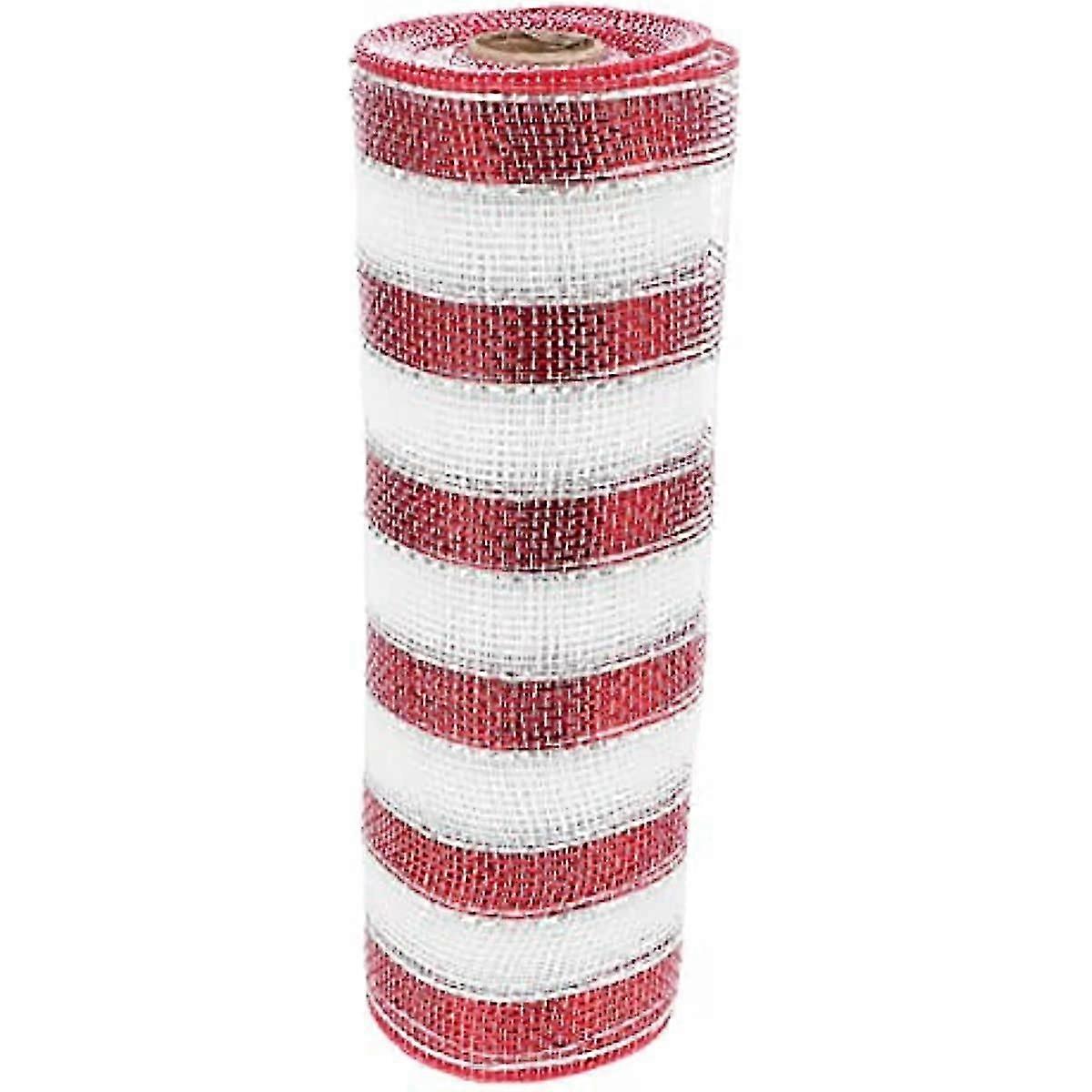 HEALLILY 1 Roll Christmas Poly Mesh Ribbon Metallic Red and White Stripe Foil Ribbon Decorative Craft Ribbon for DIY Wreath Pendant Christmas Tree Emb