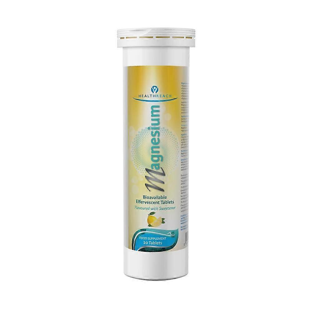 Healthreach Magnesium Effervescent 20 Tablets offer a convenient and effective way to supplement your daily magnesium intake. Each tablet contains a carefully balanced combination of magnesium carbonate and citric acid, which react when dissolved in water to form highly bioavailable magnesium citrate. This effervescent formulation ensures rapid absorption, making it an ideal choice for those seeking quick and efficient magnesium supplementation.Magnesium plays a vital role in supporting overall health, including energy production, muscle function, bone strength, and nervous system balance. Regular use of these effervescent tablets can help maintain optimal magnesium levels, contributing to improved muscle relaxation, reduced fatigue, and enhanced cognitive function. Supports Energy Metabolism: Magnesium is essential in converting food into energy, helping reduce tiredness and fatigue. Promotes Muscle Health: Supports normal muscle function and helps prevent cramps and spasms. Maintains Bone Health: Works synergistically with calcium and vitamin D to support strong and healthy bones. Supports Nervous System: Contributes to normal neurotransmission and helps maintain psychological well-being.The effervescent format makes these tablets easy to take, especially for individuals who have difficulty swallowing pills. Simply dissolve one tablet in a glass of water to enjoy a refreshing, magnesium-rich drink. This product is suitable for daily use and can be incorporated into your wellness routine to support active lifestyles, athletic performance, or general health maintenance.Choose Healthreach Magnesium Effervescent 20 Tablets to enhance your wellbeing with a high-quality, fast-acting magnesium supplement formulated for maximum absorption and convenience.