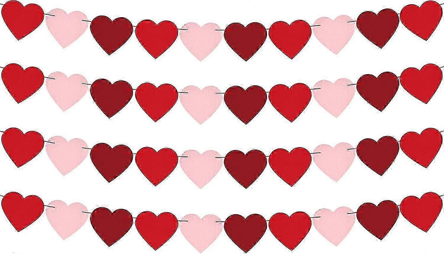 Heart Garland Decorations For Valentines Decor - Red,rose Red Pink Color, No Diy | Anniversary | Love Felt Valentine Garland For Room And Fireplace
