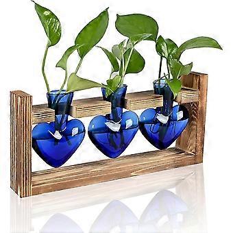 Heart Shaped Propagation Stations, Plant Terrarium with Wooden Stand, Plant Propagation Station for Hydroponics Office Garden Home Decor, Gifts for Wo