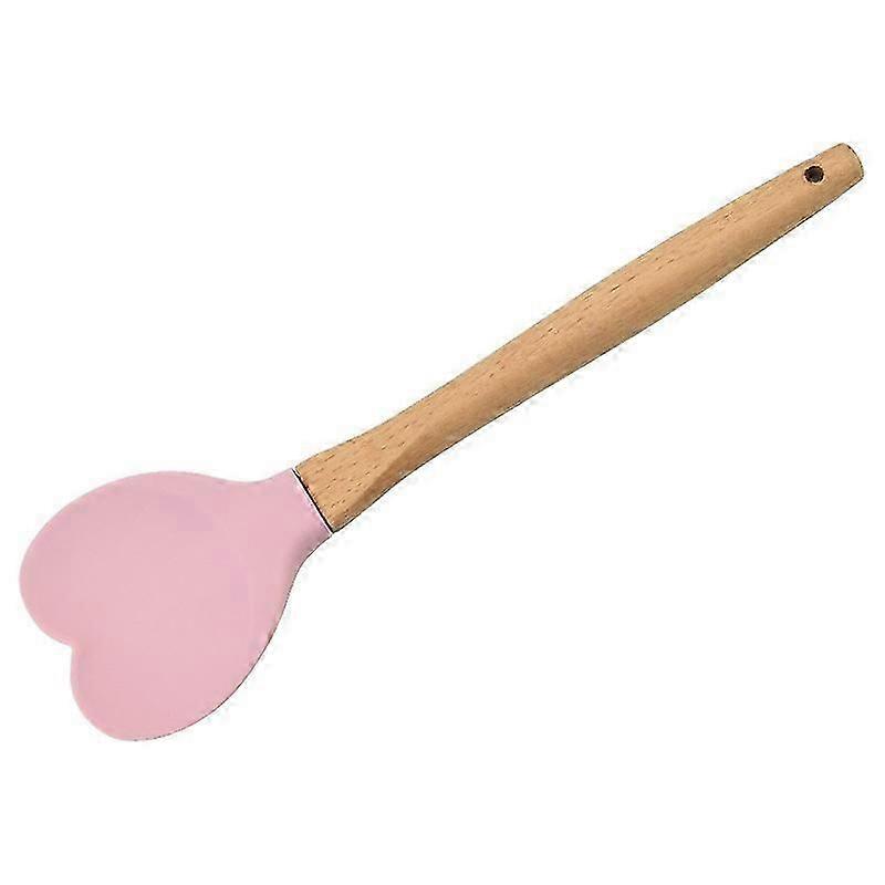 Heart Silicone Spatula - Heat-Resistant Wood Handle Tool