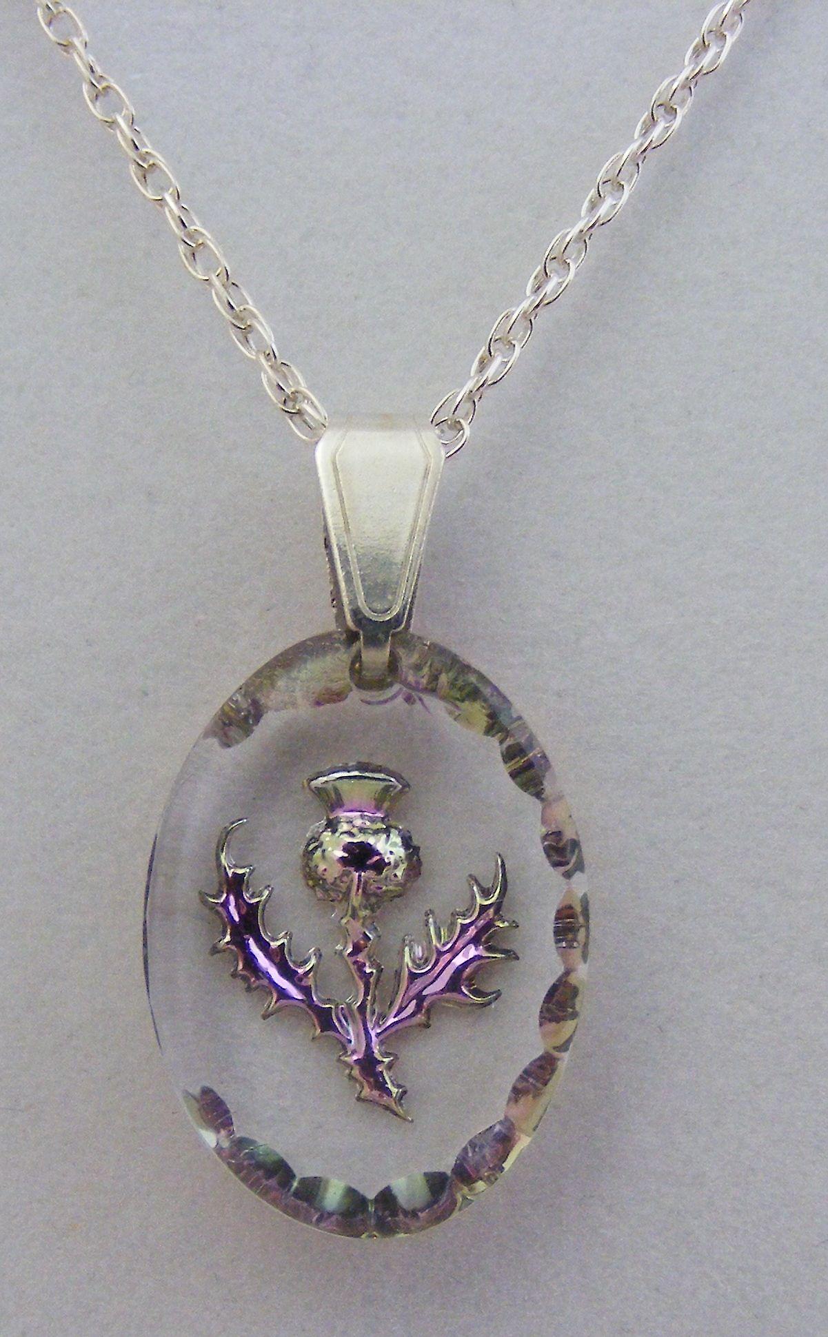 Heather Small Oval Thistle Crystal Pendant Necklace
