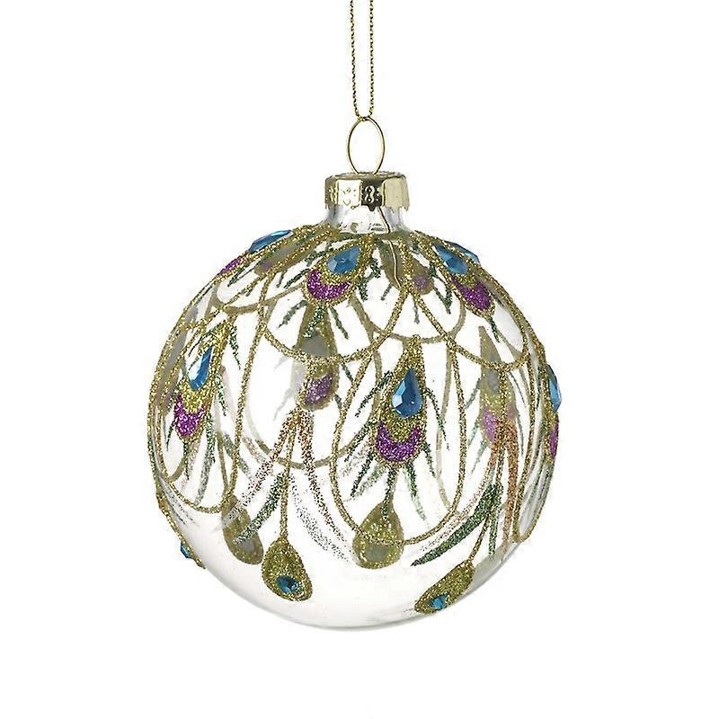 HEAVEN SENDS CLEAR PEACOCK DESIGN CHRISTMAS TREE BAUBLE  This bauble from our Heaven Sends [/heaven-sends.html] Christmas collection brings a gorgeous look to any display. The presentation of this bauble is utterly stunning and features a clear bauble, decorated elegantly with gold, green and pink glitter to mimic a peacock pattern. Finished gracefully with blue gems to add life and texture, the most stunning bauble that you could add to your Christmas tree this festive season. Let this bauble do all the talking for you this Christmas and be mesmerised by its beauty, the perfect decoration if you want to add some sparkle and colour into your Christmas display. A must have piece that you won't be able to find anywhere else, update your Christmas decoration collection today with this glitter themed peacock Christmas bauble by Heaven Sends.  Explore our full range of Christmas tree decorations [/christmas-decorations.html]by exploring the website today