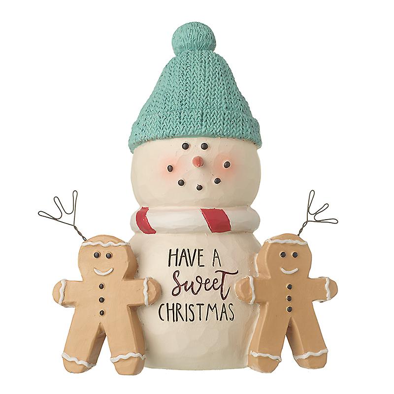 HEAVEN SENDS HAVE A SWEET CHRISTMAS SNOWMAN CHRISTMAS DECORATION Have a sweet Christmas with this simply splendid decoration from the Heaven Sends Christmas range. [/heaven-sends.html] This novelty ornament is a great home accessory to add into your Christmas display, wonderfully finished in a poly resin clay that offers a contemporary and quirky feel. If you are looking for more modern decorations then this resin ornament from Heaven Sends is the perfect choice. Effortlessly made, this decoration features an adorable looking snowman, completed with two gingerbread people either side. The festive colours on this decoration bring a sense of warmth and comfort to any room, as well as the humorous motif that reads "Have a sweet Christmas." Decorate your mantlepiece with this brilliant decoration or gift to a friend to show your appreciation this festive season. For more wonderful Christmas decorations [/christmas-decorations.html] you can shop our website for more inspiration.Â