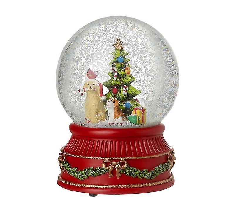 HEAVEN SENDS DOGS AROUND CHRISTMAS TREE MUSICAL SNOW GLOBE Toast to Christmas around the tree and get all of your four legged friends involved with this charming snow globe from Heaven Sends. [/heaven-sends.html]Â Artistically created from their Christmas collection, this flamboyant snow globes features a dark red base, completed with gold ribbon, green garlands and more. Peer inside this delicate snow globe to see a heart warming scene of two Dogs sat around a Christmas time, surrounded by colourful presents and other festive accents that will make you smile. Brightly coloured and intricately made, this musical snow globe is an engaging decoration that will look fantastic in any room of your home. A flawless present for a loved one who loves their four legged friend, we know any dog lover would appreciate this quirky snow globe from Heaven Sends. Turn the musical element on this snow glove to reveal the fantastic jingle of jingle bells, you and your friends will be dancing around the tree
