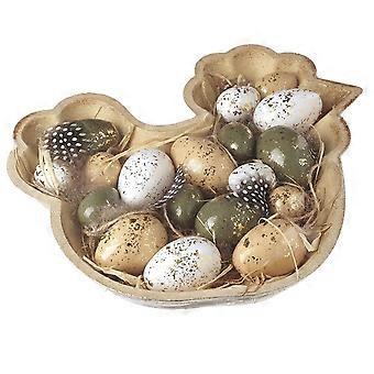 Heaven Sends Gold Speckled Easter Egg Decorations In Hen Shaped Wooden Tray