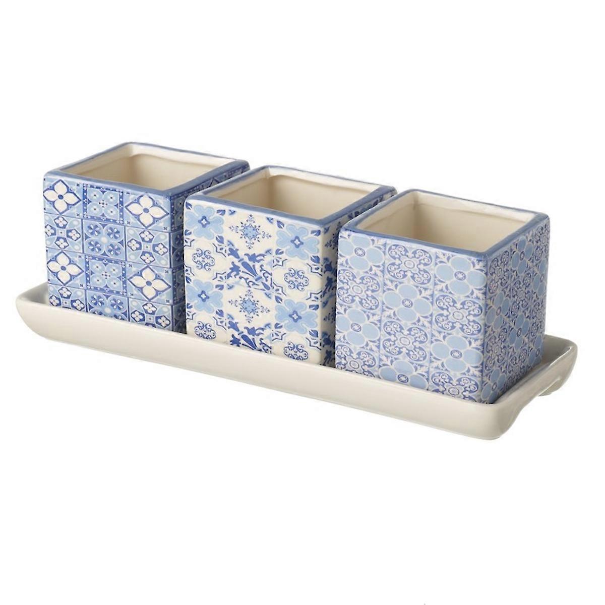 Heaven Sends Set of 3 Blue Mosaic Design Herb Pots and Tray
