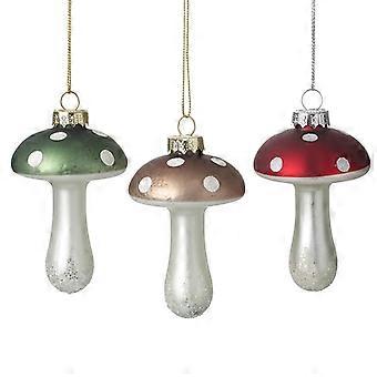 Heaven Sends Set of 3 Colourful Glass Toadstool Christmas Tree Decorations