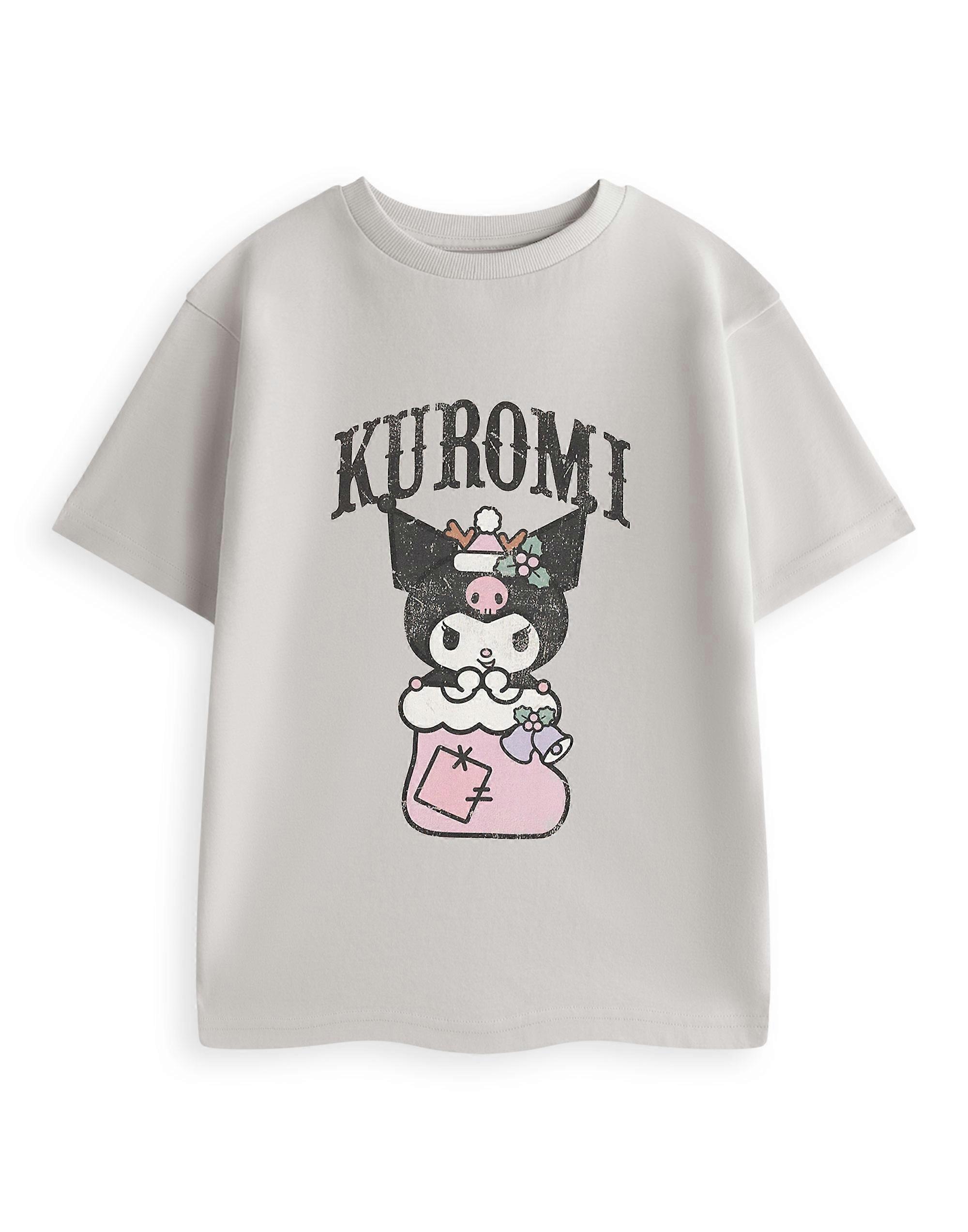 Hello Kitty & Friends Girls Short Sleeved T-Shirt Grey Kuromi Stocking - 3-4 Years
