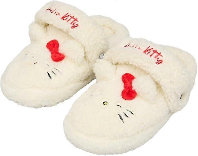 OFFICIALLY LICENSED HELLO KITTY DESIGN:Officially licensed Hello Kitty kids slippers featuring an adorable embroidered character face and branded detailing on the borg strap. Designed to delight young fans, these slippers bring iconic Hello Kitty charm to everyday indoor wear, making them perfect for relaxing at home, sleepovers, or cosy evenings during colder months.SOFT & COSY COMFORT FOR EVERYDAY WEAR:Crafted with a plush borg outer and a soft fleece textile lining, these children’s mule slippers provide exceptional warmth and comfort. The cushioned feel helps keep little feet cosy without overheating, making them ideal for all-day indoor wear, from morning routines to bedtime comfort.PRACTICAL MULE STYLE & EASY FIT:The slip-on mule design allows for quick and easy wear, perfect for children who like independence when getting dressed. The secure borg strap offers a snug yet flexible fit, helping the slippers stay comfortably in place while walking around the house, upstairs or downstairs.SLIP SOLE FOR INDOOR SAFETY:Designed with a durable non-slip sole made from other materials, these Hello Kitty slippers offer improved grip on indoor surfaces such as laminate, tiles, and wooden floors. The flat sole supports everyday movement while helping to reduce slipping, giving parents extra peace of mind during indoor play.IDEAL GIFT & COLOURFUL SIZE RANGE:Finished in a soft white colour with contrasting red and black embroidered details, these slippers are available in UK children’s sizes 8 to 2. A wonderful gift idea for birthdays, Christmas, or special occasions, they’re perfect for young Hello Kitty fans who love comfort and cute character style.