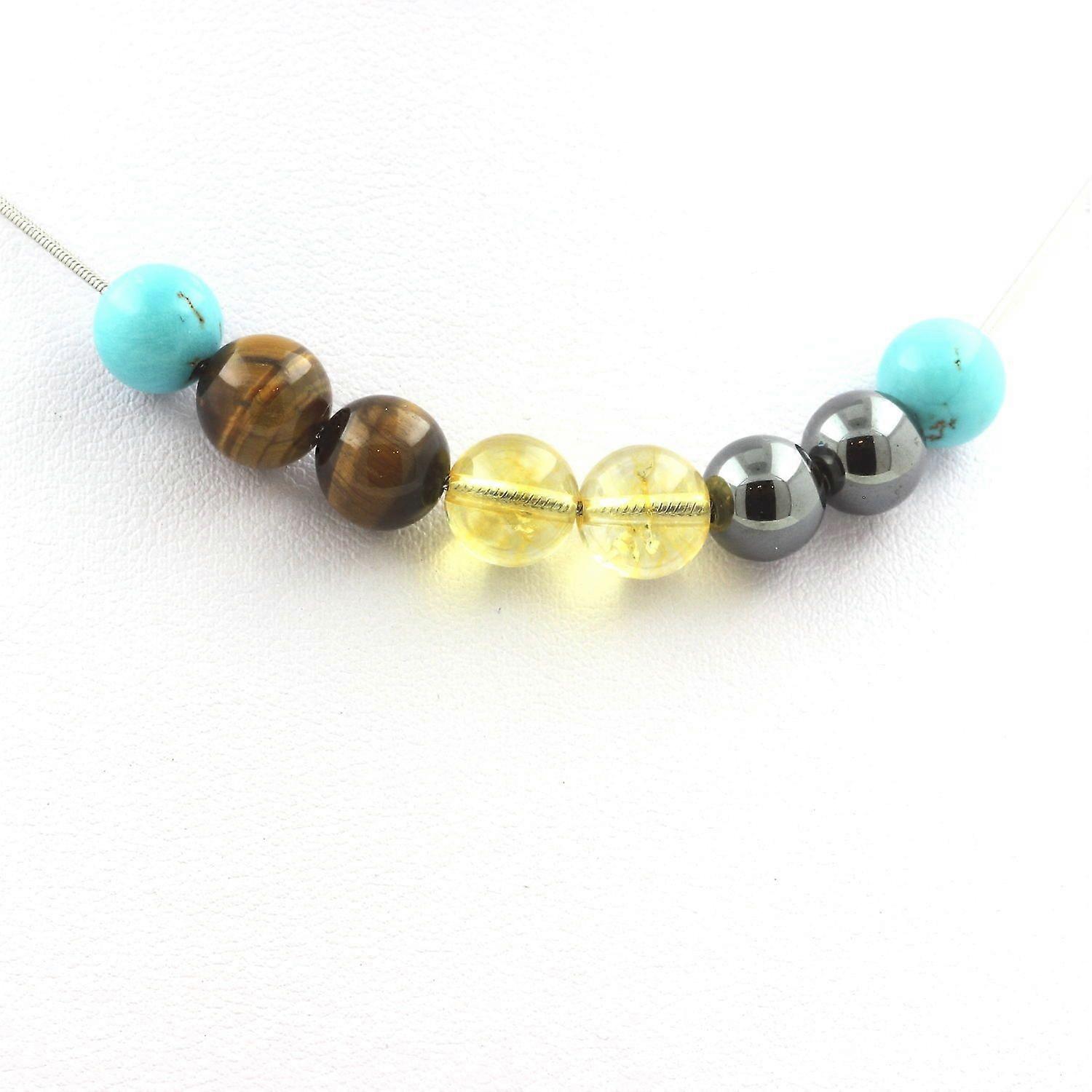 Hematite + Citrine + Tiger Eye + Turquoise beaded necklace 8 mm