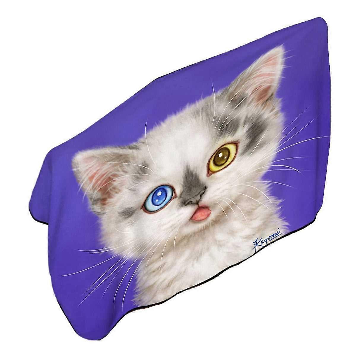 Heterochromia Eyes White Grey Kitty Cat Microfiber Beach Towel