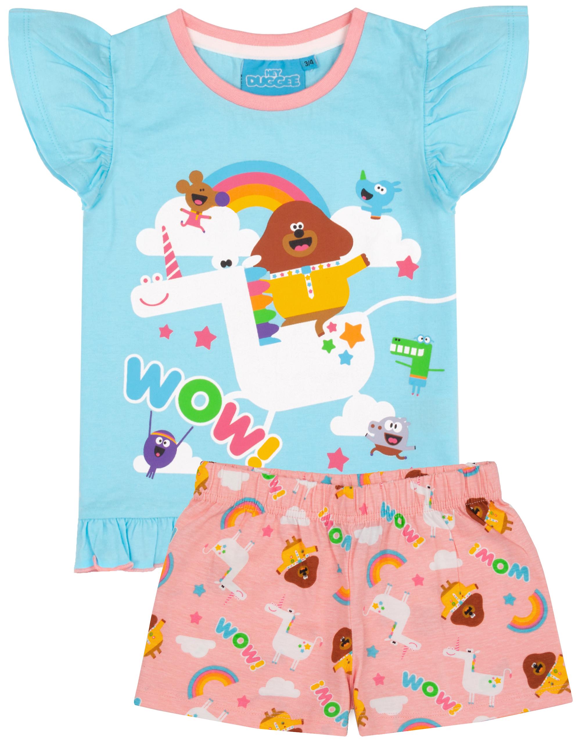 Hey Duggee Girls Short Sleeve Short Leg Pyjama Set Blue Duggee , Unicorn & Norrie All-Over Print