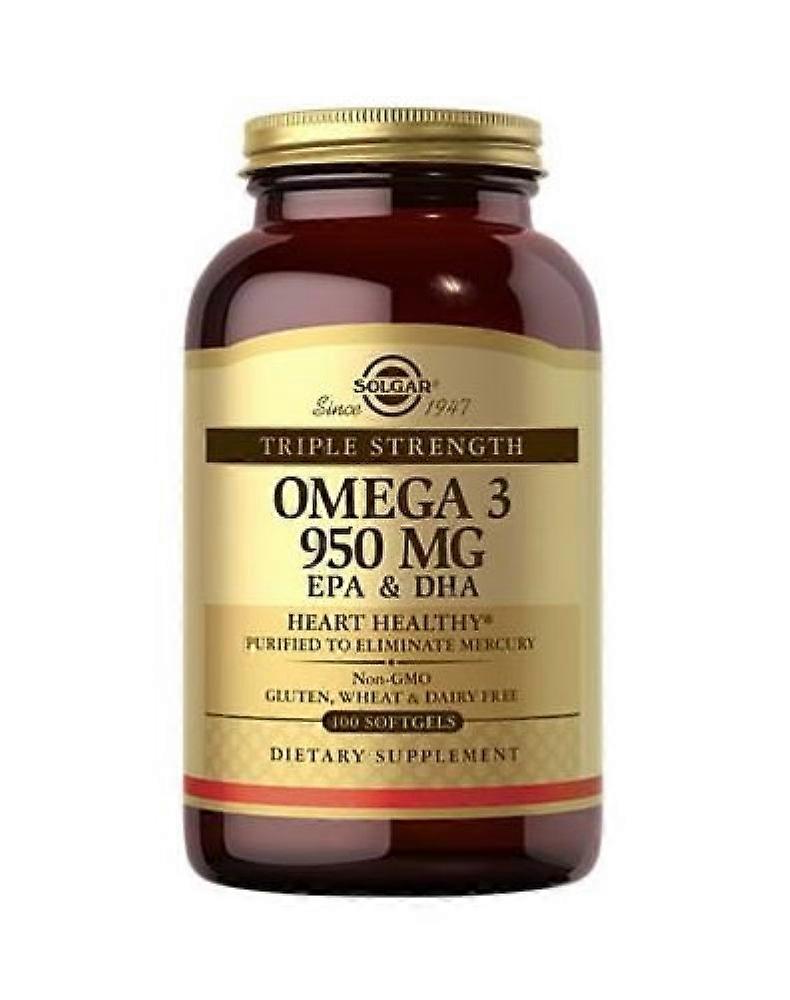 Omega-3 950 mg represents Solgars premium concentration of natural Omega 3 polyunsaturates EPA and DHA sourced from cold-water fish. This formulation promotes cardiovascular, joint, and skin health.* It undergoes molecular distillation to eliminate mercury.